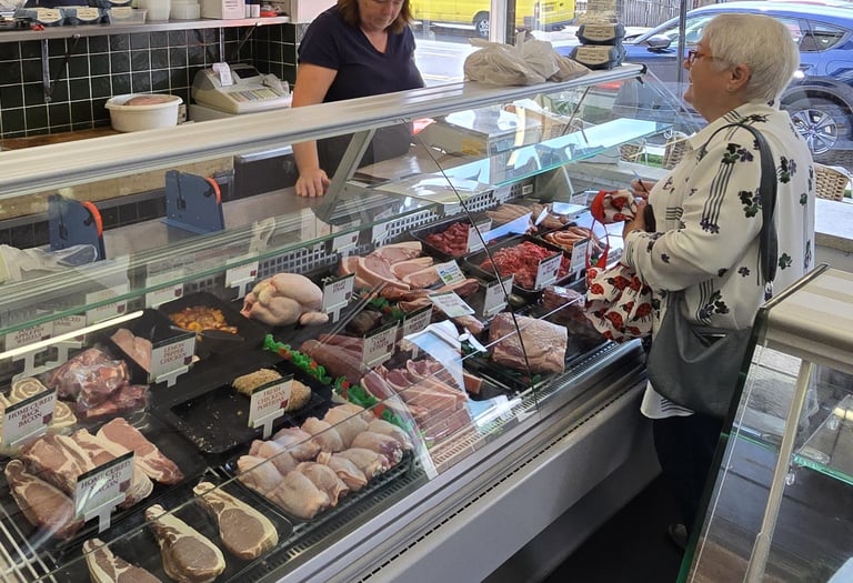 Walkers Traditional Butchers offers a variety of fresh meats, including lamb and pork.