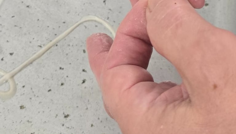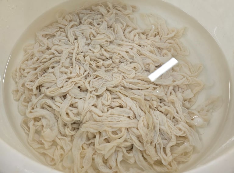 6.Natural skins are threaded onto the sausage 'stuffer.'